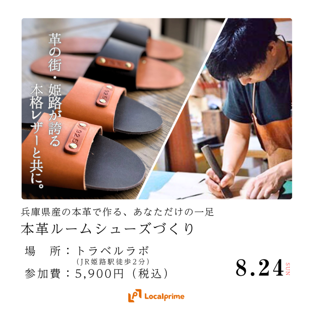 ホーム » 体験・イベント » 〔2025/8/24(日)開催〕兵庫県産の本革で作る。あなただけの一足。本革ルームシューズづくり