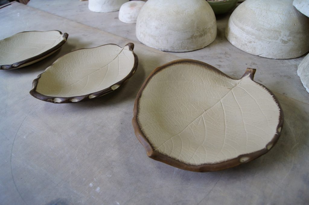 - 赤穂雲火焼と赤穂緞通の鑑賞、雲火焼の陶芸体験(葉皿作り)