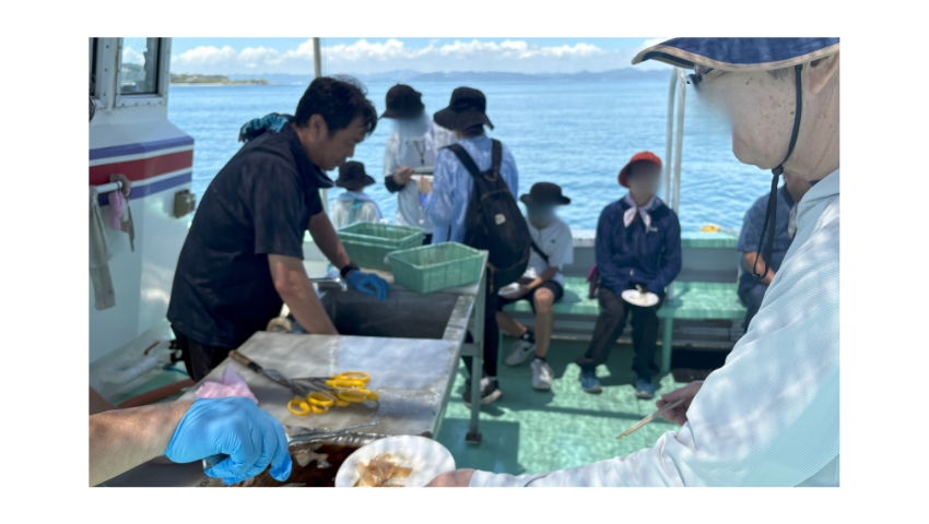 7月21日・8月31日に開催された「船上で漁を楽しむ。家島諸島クルーズ」に、添乗員として同行しました。街中では決して味わえない“海の現場”を体験できる特別な一日。漁師の仕事を間近で見学し、その場で味わう新鮮な魚、さらに島の漁業施設まで見学する贅沢なプログラムです。